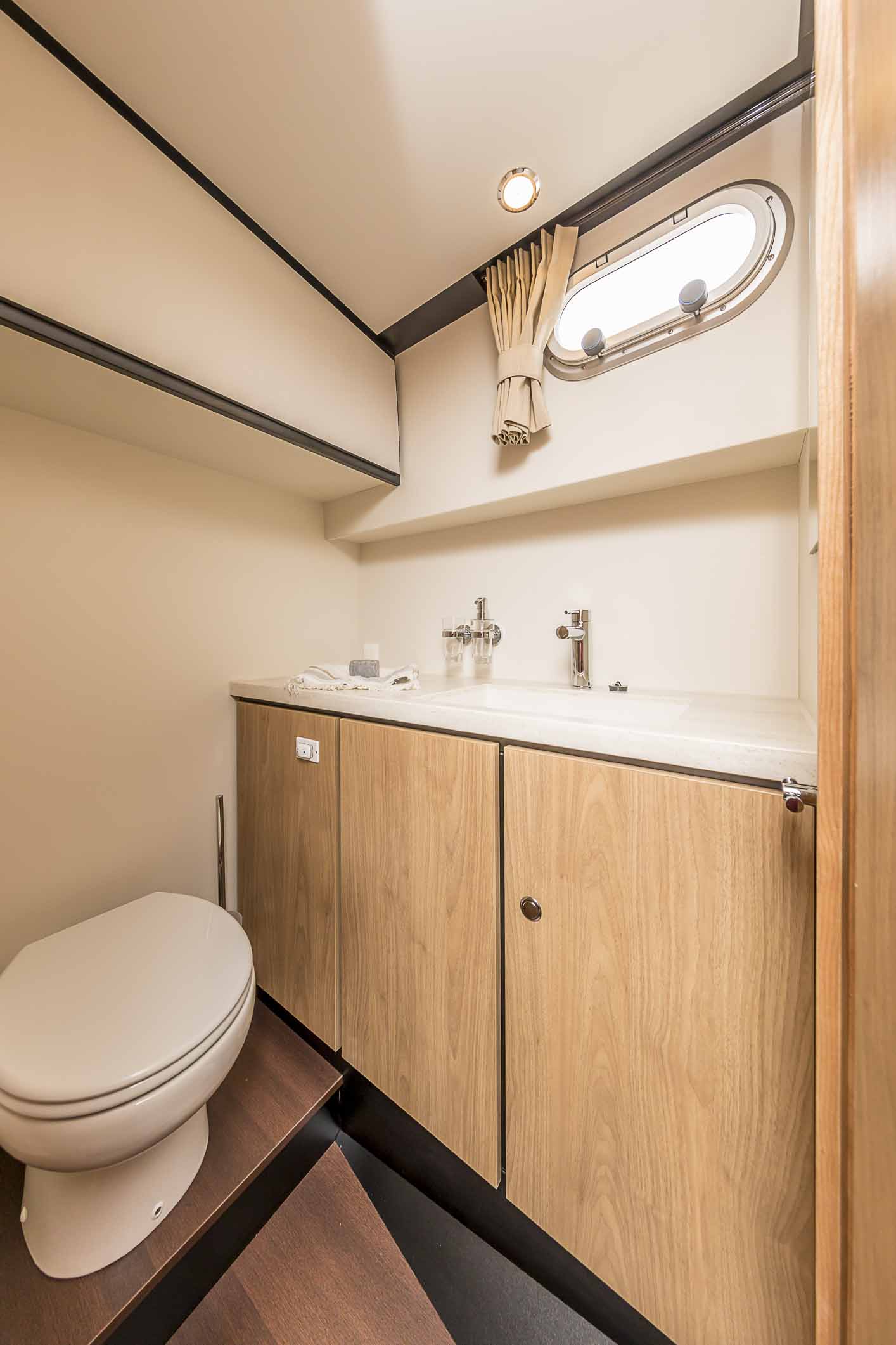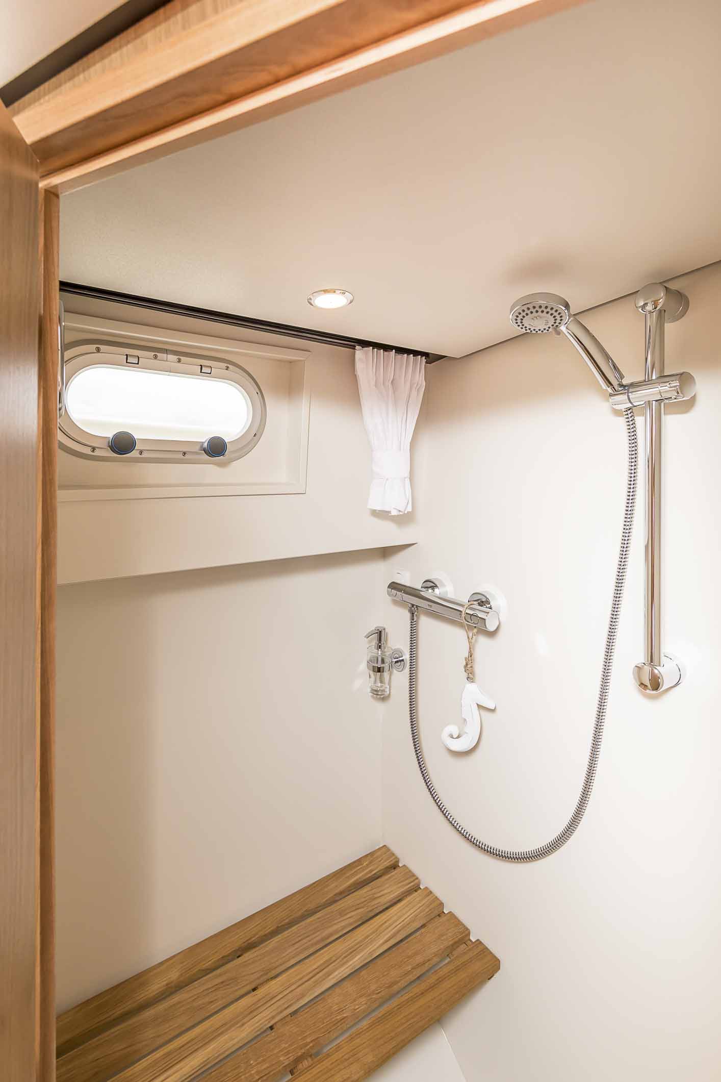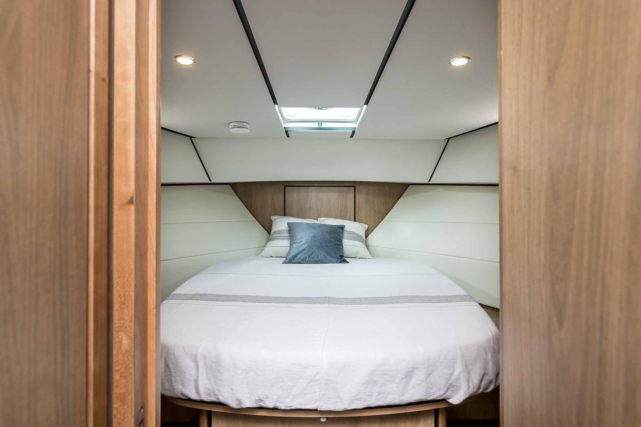 Die Sedan-Version hingegen besitzt nur eine Vorderkajüte mit Schlafplätzen für 2 Personen sowie mehrere Schränke, Toilettenkabine und separate Duschkabine. Sowohl bei der AC als auch der Sedan ist es dank dem „Easy Sleep Convert System“ möglich, 2 weitere Schlafplätze durch Umbau der Salonbank in ein Doppelbett zu kreieren.
