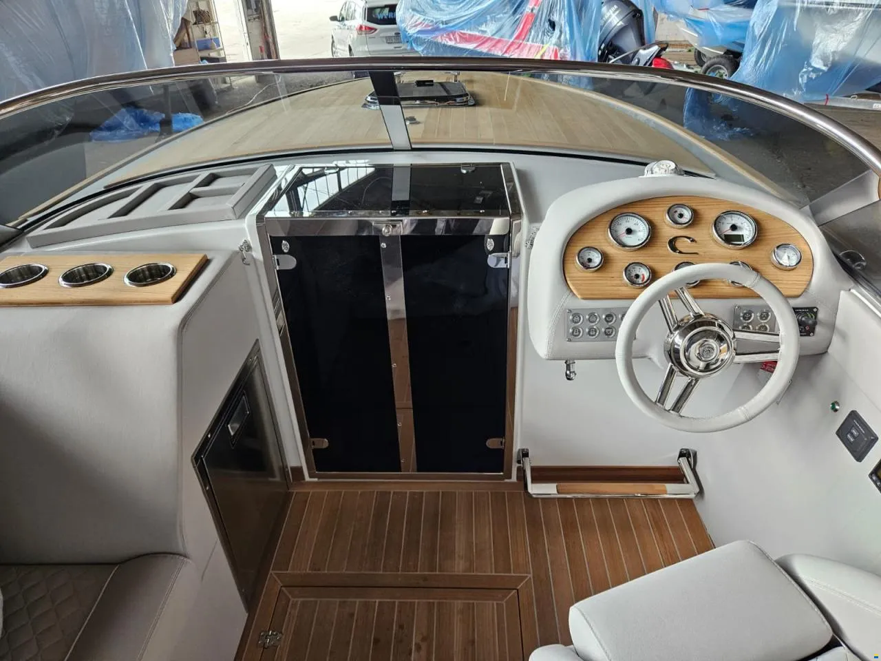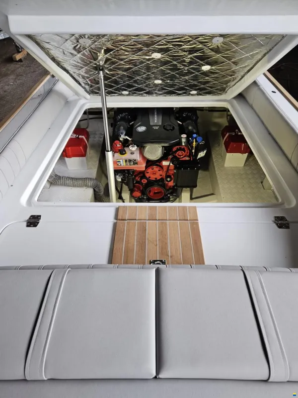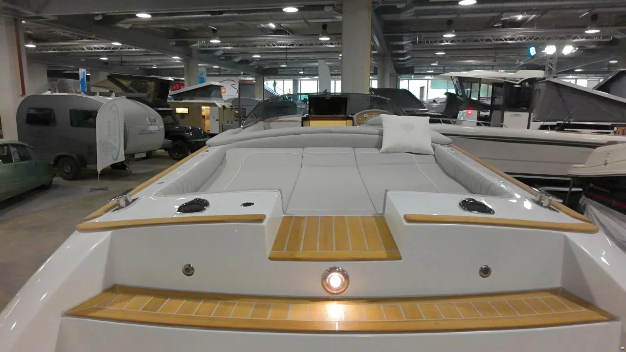 Klassisches Runaboat: elektrische Ankerwinde, Bugstrahlruder, Kühlschrank zum ausziehen, Cockpit Bodenbeleuchtung, Teak rund um Aufbau, Antifouling in schwarz, Nautinox Badeleiter mit intergrierten Haltegriffen, Bimini über Cockpit, 6 Fender mit Fenderschutz, 3 Leinen, Abgaszertikifikat und Lärmzertifikat für die Schweiz; für Bodensee möglich. Ein Liegeplatz kann in Romanshorn längerfristig gemietet werden.